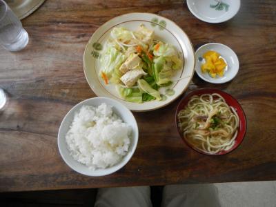 野菜チャンプル定食は小さなそばもついてボリュームたっぷり。