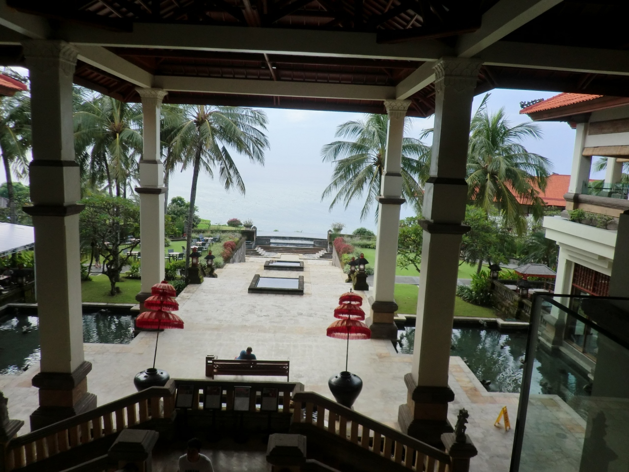 バリ島には高層のホテルはとても稀なのですがオープンエアのエントランスからの海の眺望はとても素晴らしくフロントやレストランそしてプールやビーチなどのホスピタリティは充実していると思います。