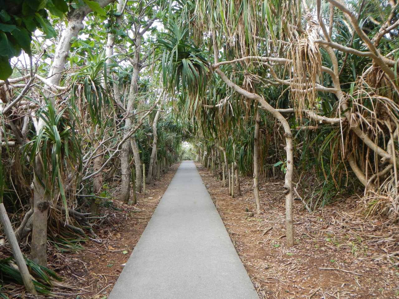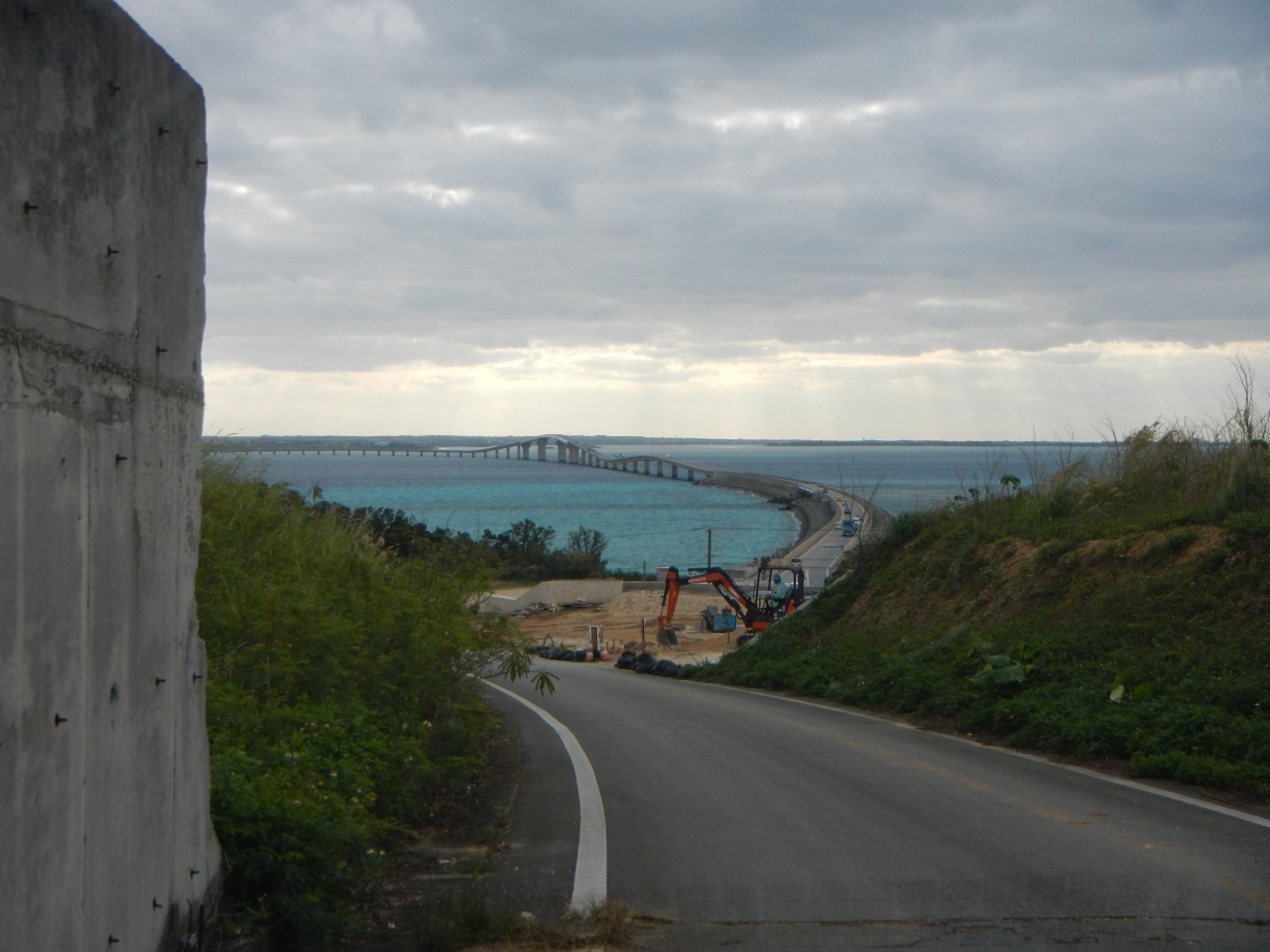 駐車場は無料。平良市街地へは緩やかな坂を登り徒歩圏内。