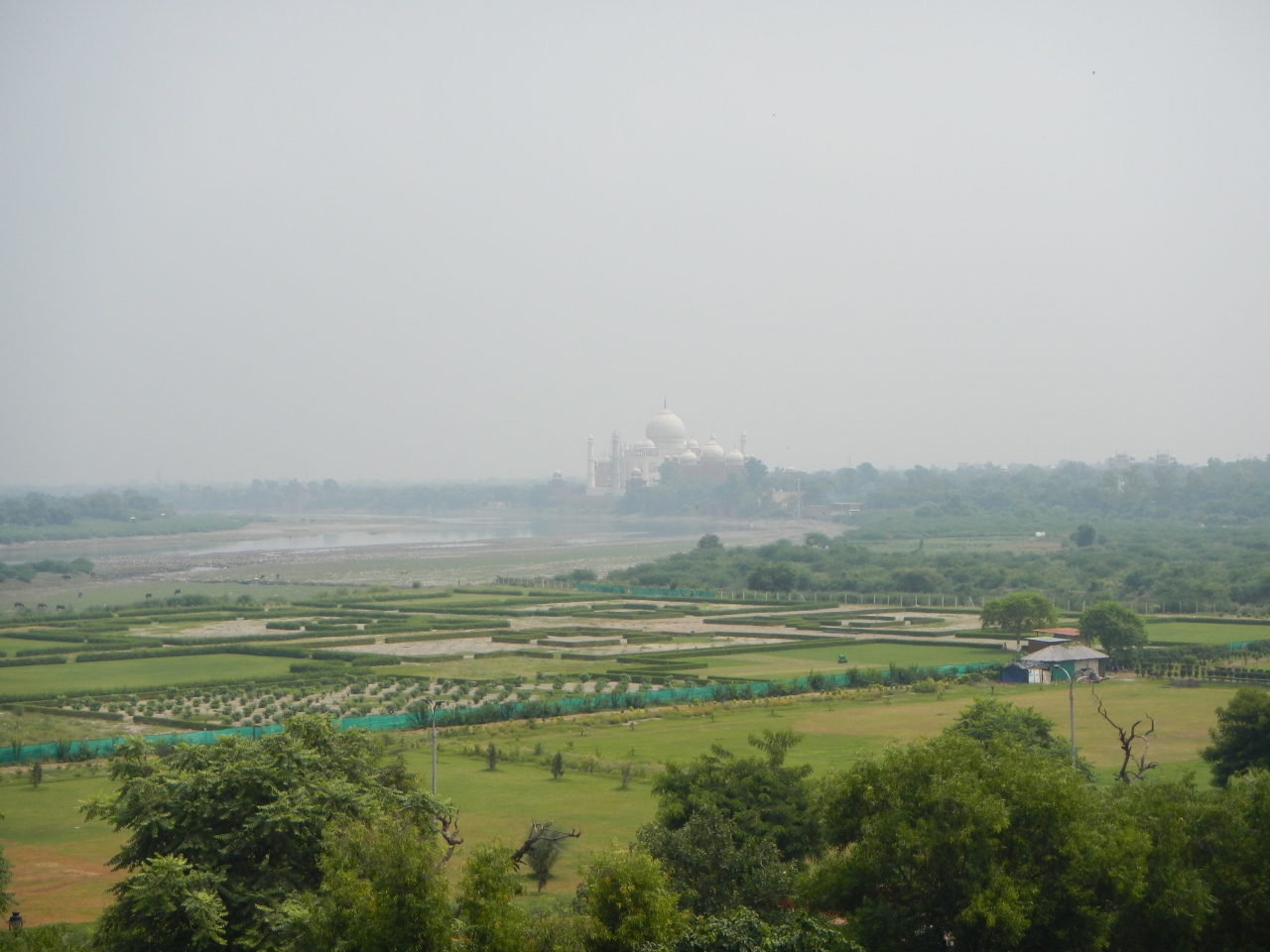 タージマハルを造営した王がその息子によってとらわれ幽閉されていた場所からヤムナー河を挟んで見えるタージマハルは美しくロマンを感じます。