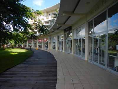 アンスバタ・シトロン湾地区からヌメア中心地へ向かう途中に見えるショッピングセンター。店舗の裏側はヨットハーバーがありホワイトを基調とした建物は南欧風でとてもお洒落。