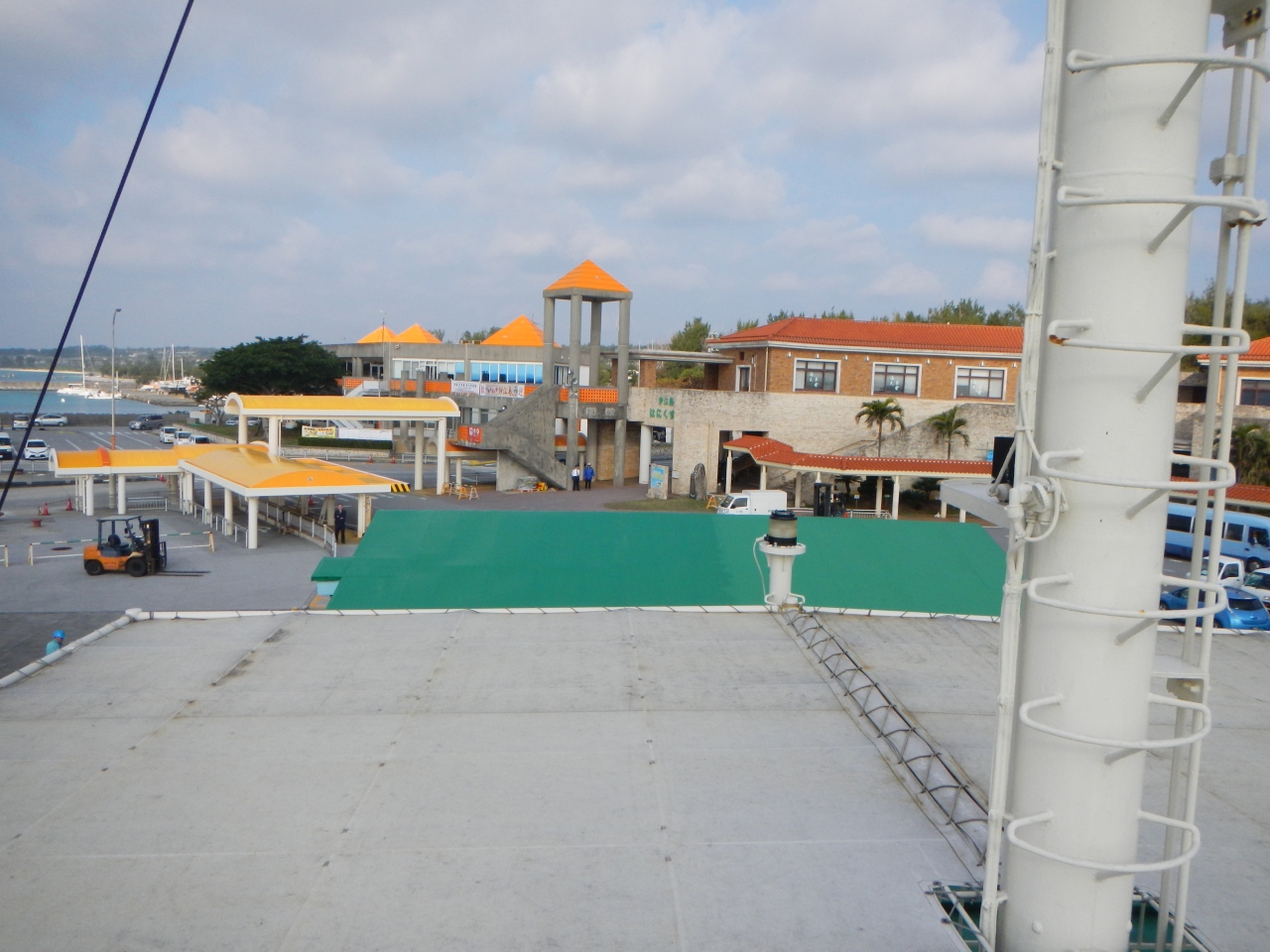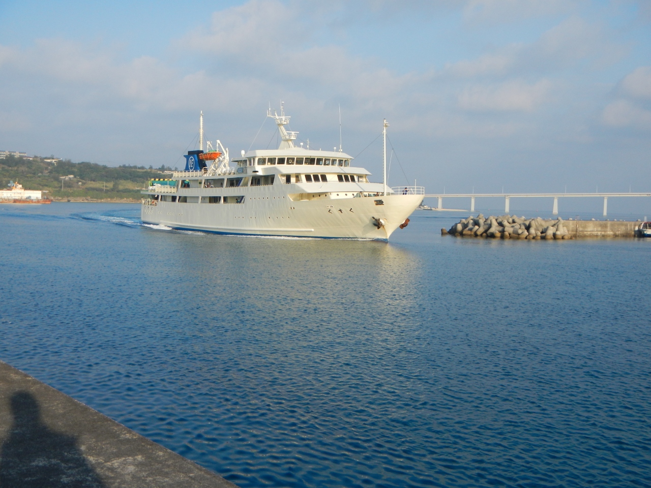 本部港フェリーターミナルから約30分で伊江島へ・・通勤通学買い物など大切な生活の足になっています。訪れた1月は1日4往復の運行でした。
