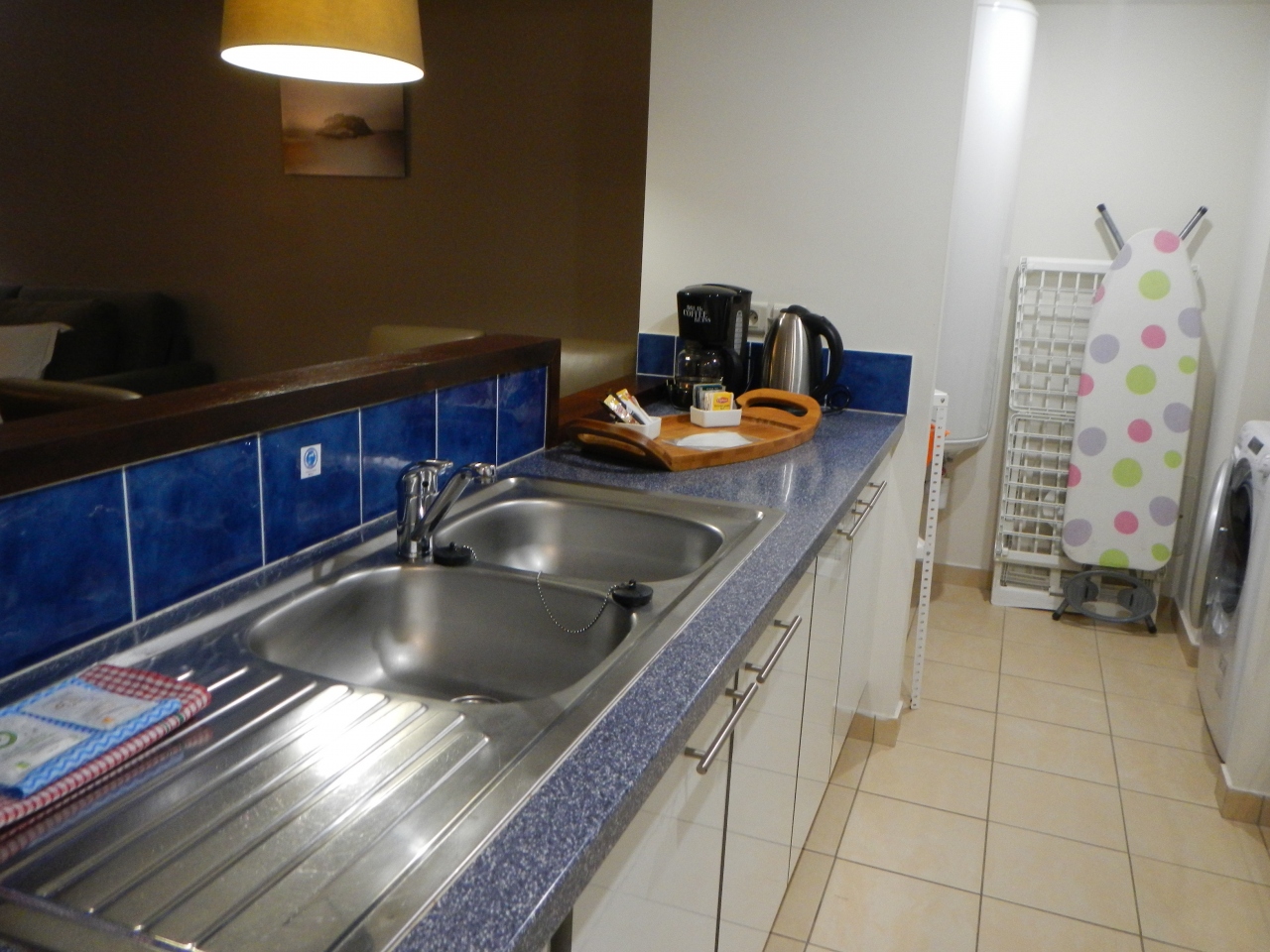フルキッチン+ドラム式洗濯機付。キッチンのカトラリーなどは不足なくそろっていました。バスルームのアメニティは最小限ですがシャワートイレが嬉しいです。