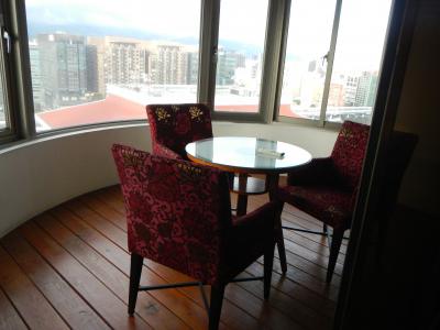 リビングルームとベッドルームがわかれたとても広い部屋。サンルームのようなバルコニーからの眺めはとっても素敵でした。台北駅舎が眼下に!