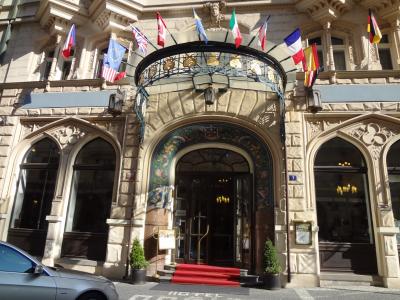 プラハで計4泊したホテルParisの玄関です。アールヌーヴォーの装飾が...