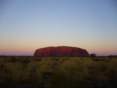 日没したところ。だんだんウルルの色と空の色が変わっていきます。