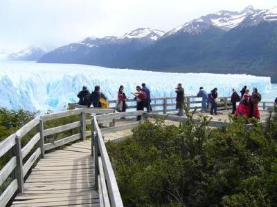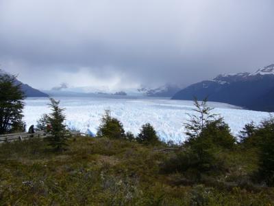 船からの氷河鑑賞の後、バスに戻りペリト・モレノ氷河の見える展望台まで...