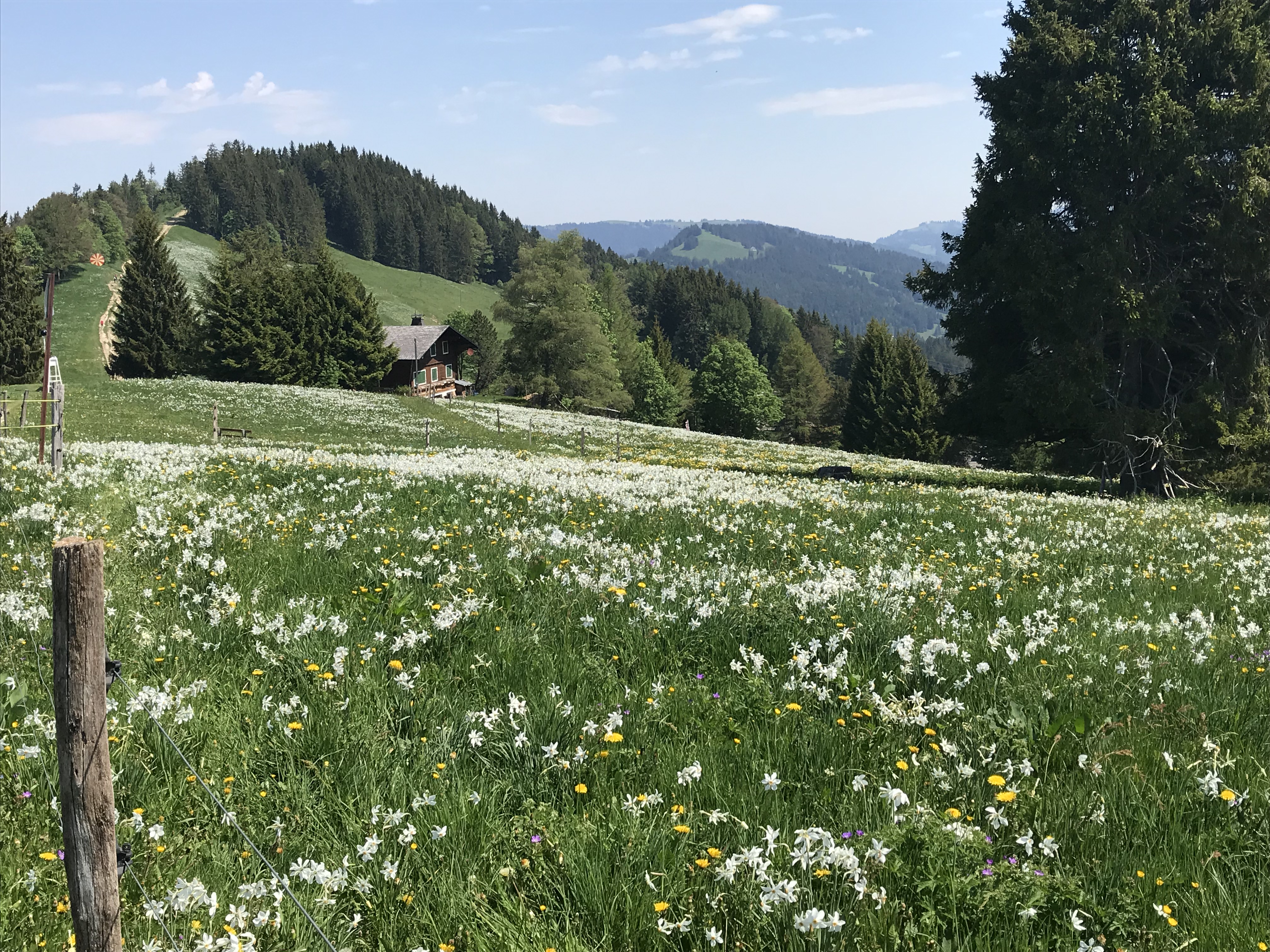 山とナルシス。この時期にここに来ることができたことに感謝。