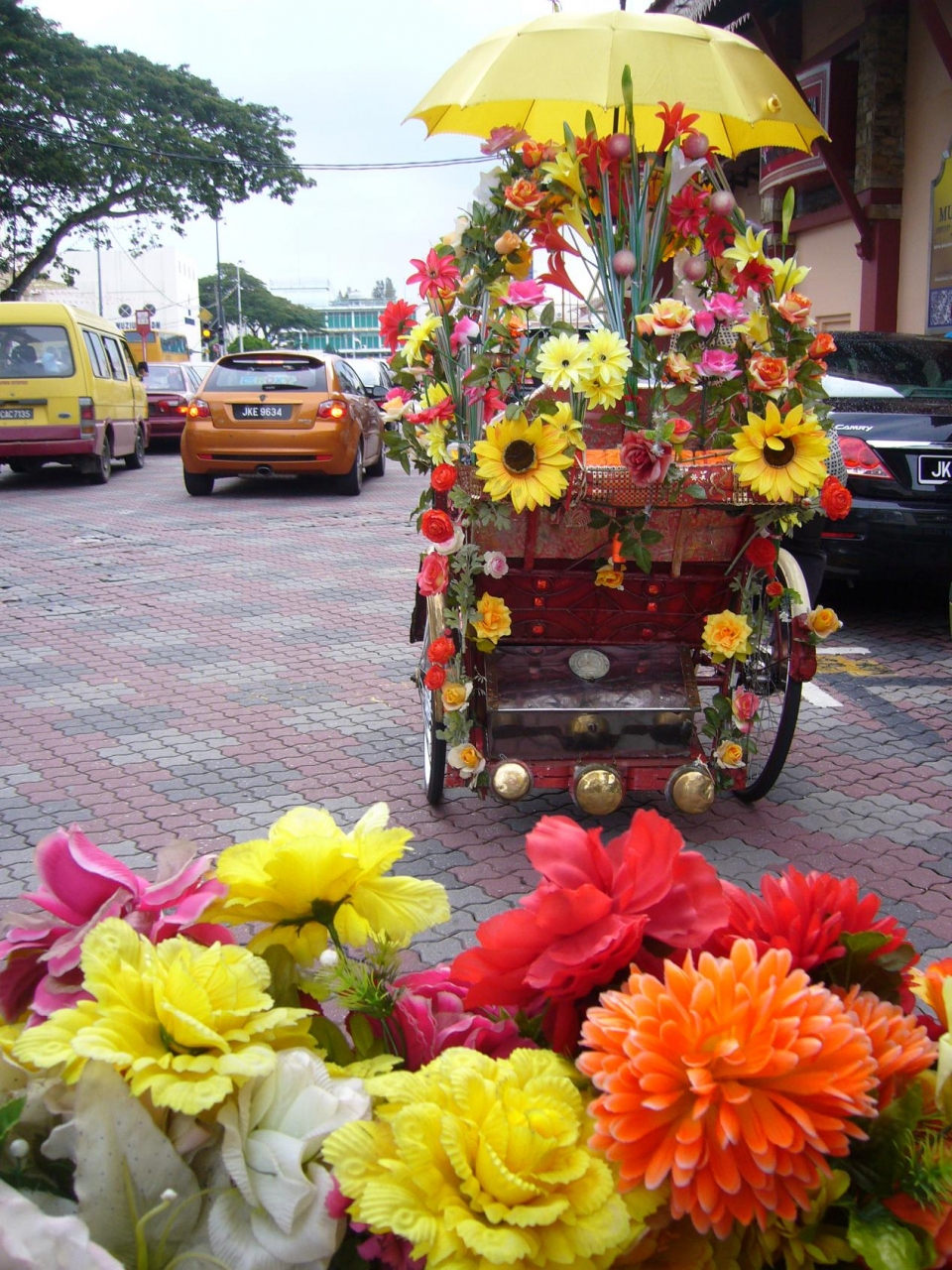 造花やら人形やらで飾り付けられたド派手な乗り物に揺られて、ノスタルジックな街をめぐるのも、オツなもんです。- 旅行時期