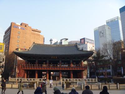 途中で休憩をはさみつつ、どんどん歩いて明洞を目指します。道中、お寺?み...