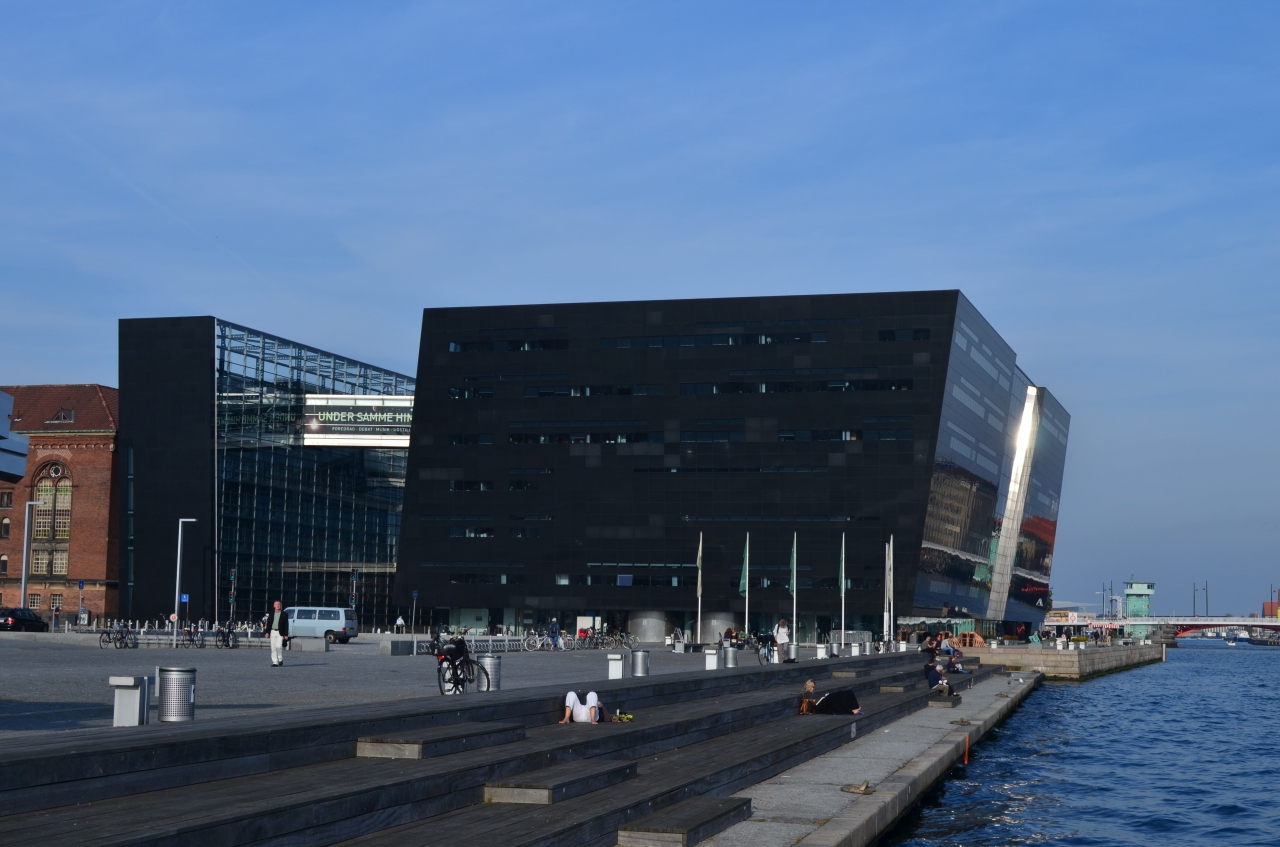 1999年に建てられた王立図書館の新館、通称ブラックダイヤモンドは黒い大理石や黒ガラスで覆われているのでシックでとても美しい。ブラックダイヤモンドを見るならば、近くにたってみるのもよいが、やはり水上バスカらの眺めが最高!。視界を遮るものがないので、大きな建物の迫力を十分に楽しむことが出来る。水上バスは10時以降の日中であれば毎時00,20,40に王立図書館手前を出発し、オペラハウスや人魚像方面に向かうので、移動ついでに是非水上バスを利用し、王立図書館を運河の上から堪能してほしいところ