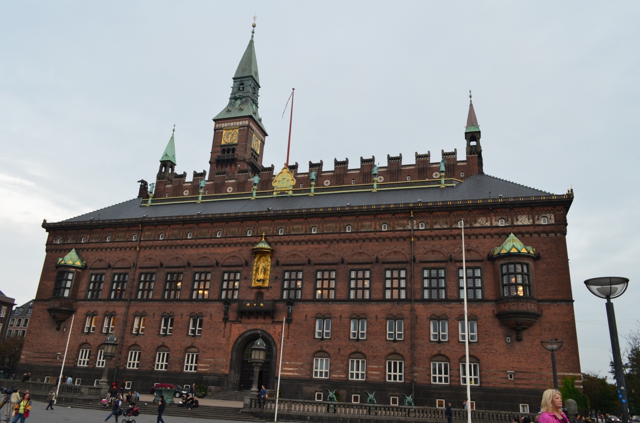 1900年代初頭に建てられた市庁舎はどっしりと構えられ、立派な時計台は105メートルを超え、コペンハーゲンで一番の高さを誇る。外観からは市庁舎というよりも王宮のようにも感じる。現在コペンハーゲンでは条例により市庁舎よりも高い建物を建てることが出来ない規制が作られている。