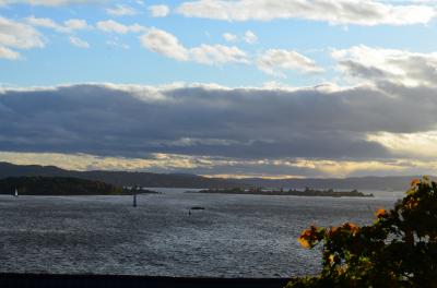 オスロの観光で一番気に入ったのが、アーケシュフース城の建つ丘からのフィョルドの眺め。海に沈む太陽に照らし出されたフィヨルドがとても美しく、シルエットで航行する船影が景色に溶け込みいつまで見ても飽きることがない。