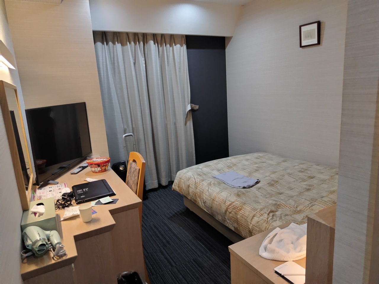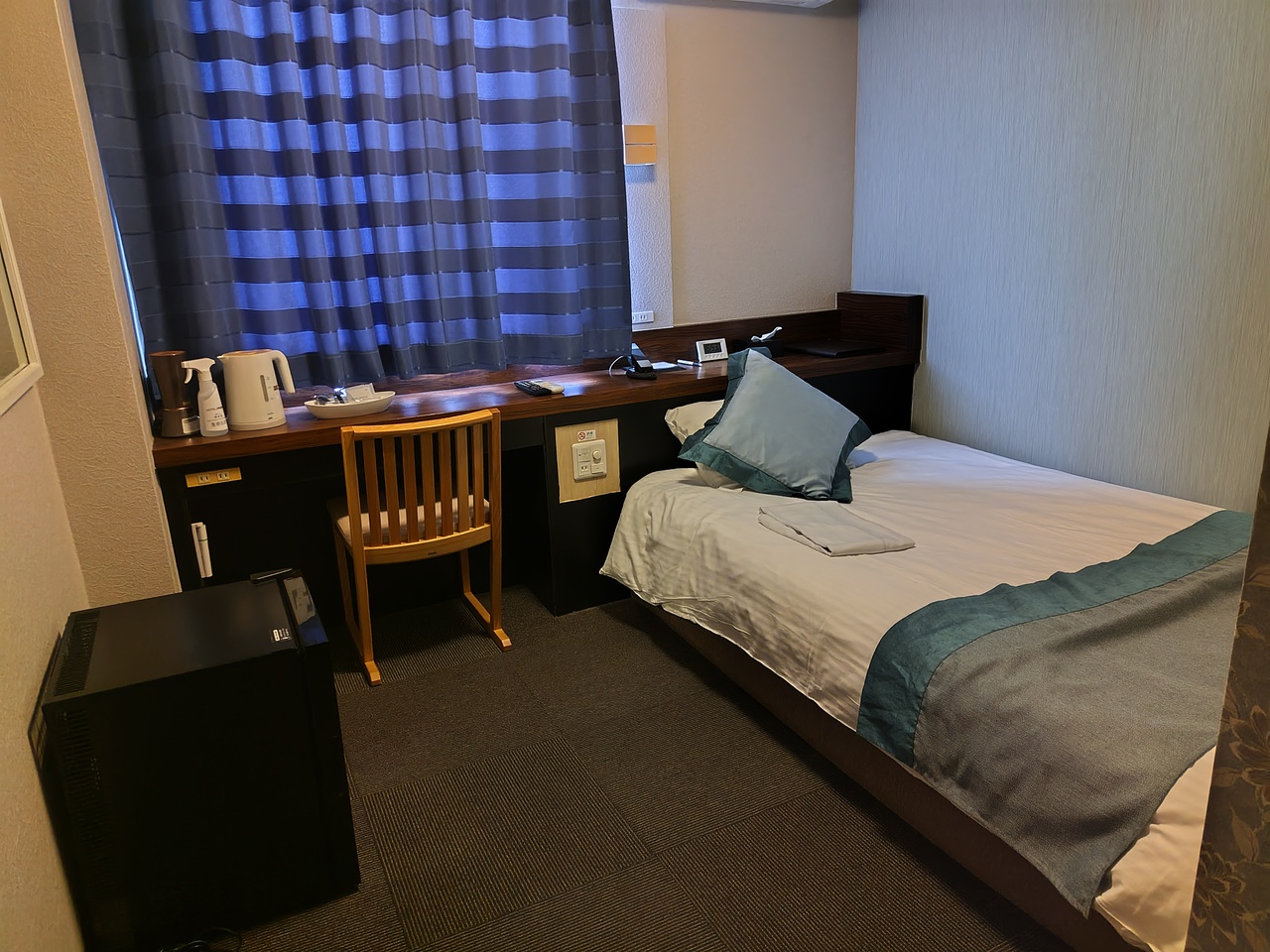 金沢駅から近く、徒歩5分程度。それでいて5000円程度で宿泊できるのは尾根うち価格ではないだろうか。部屋はシンプルなビジネスホテルで最低限の設備は整えられている。大浴場もあってビジネス客にはありがたい。