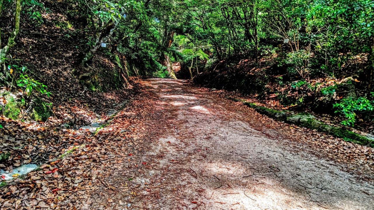 みやじマリンのすぐ近くから山の方面に遊歩道が設けられている。それがあせび歩道だ。大元公園から大聖院に抜ける約700メートルの散策路で、自然を楽しみながら散策できるのでおすすめだ。時折シカに出くわすこともある。