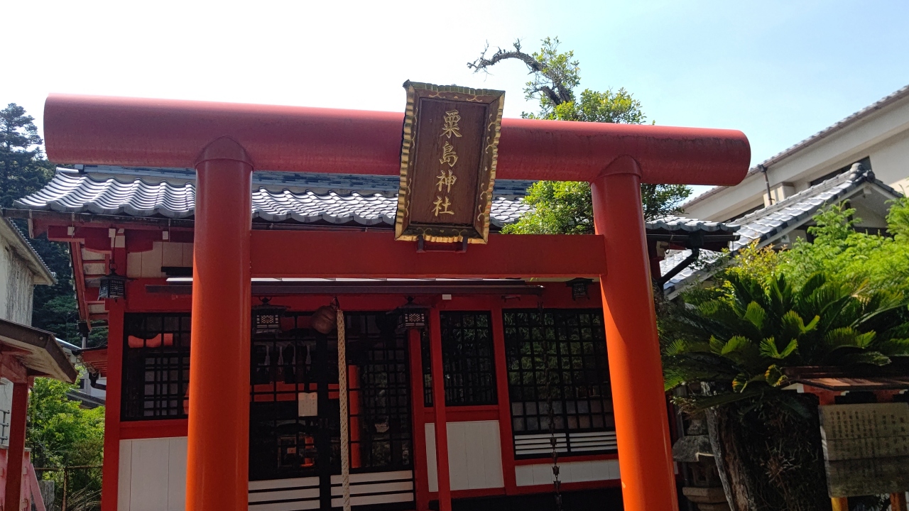 大聖院から緩やかな下り坂になっている滝小路を散策していると、左手に粟島神社がある。創建は不詳とされており、小さな社と鳥居が建てられている。特筆すべきところはないが、一寸法師のモデルとなった少彦名命が祀られており、天乃羅摩船に乗って来訪したと伝えられる。