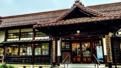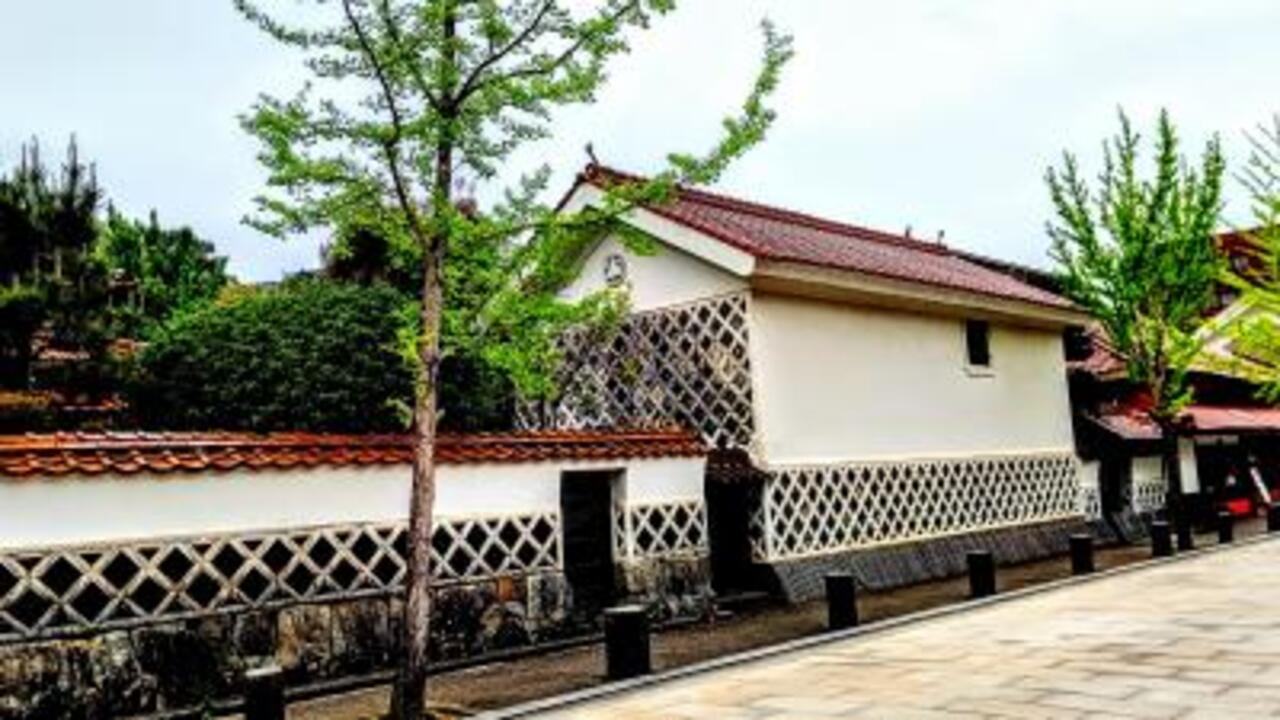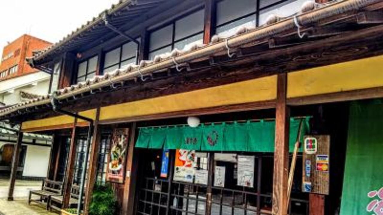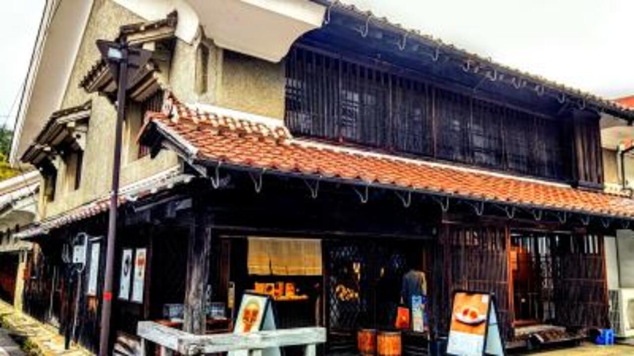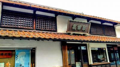 江戸時代から続く店も並んでいるが、こちらの店は1951年(昭和26年)に創業した和菓子屋さんだ。建物はなかなかインパクトの残る様式で、本町通り側から見ると昔ながらの木造建築に見えるが、横から見ると蔵造りのようになっているユニークな建築物