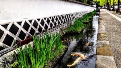 津和野といえば津和野伝統的建造物保存地区だ。城下町だったこのエリアは古い建物が並んでおり白壁が続いたエリアだが、側溝にニシキゴイが泳ぎ、何とも優雅な雰囲気がある。ゆっくり散策してみよう。側溝で泳いでいるコイを見るとホンマに心が癒やされる。