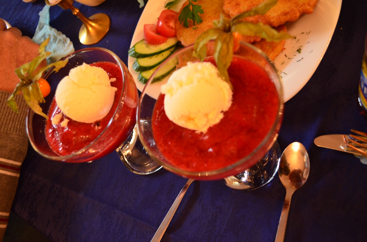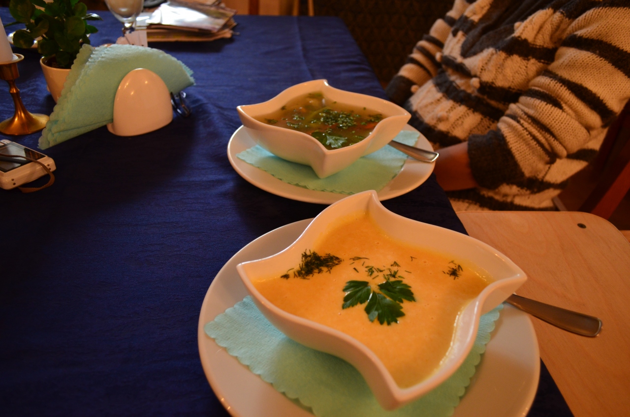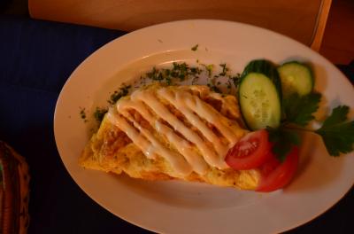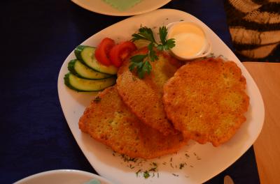 おススメはサーモンのミンチが入ったクリームスープやこれは日本にはない新触感!サーモンが粒々となり、舌触りは少しざらっとした感じ。でもサーモンとクリームが良くマッチしておりとても美味しかった。このほかラトビアの伝統料理でもあるポテトで作ったパンケーキもある。- 旅行時期