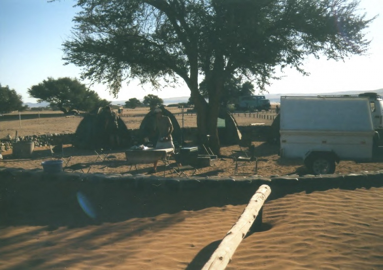 ワイルド・ドック・サファリと言う旅行社の2泊3日の砂漠ツアー(2泊3日食事・テント付きで約27,000円)で2泊しました(寝袋は有償支給)。