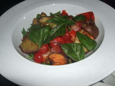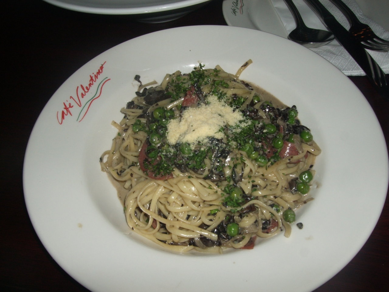 ペペロンチーノ、温野菜サラダ、シーフードパスタそのほかビールやジュースを頼んで約4,550円。パスタのボリュームが多く、温野菜サラダを全て食べることができないほど量は多く、それでいて美味しかった。