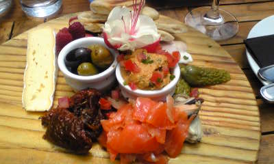 そのアートセンター内にあるレストランのアニーズ・ワインバー&レストラン。アニーズ特製のアンティパスト。オリーブやサーモン、サラミ、チーズ、ムール貝など多種にわたる盛り合わせはいろんな食材を楽しめて私はおすすめ!22NZ$で約1,300円くらい。