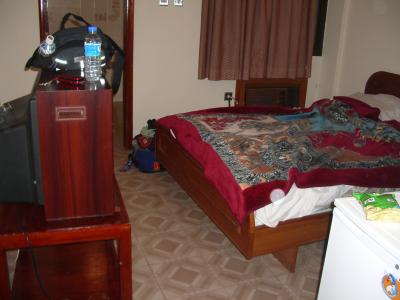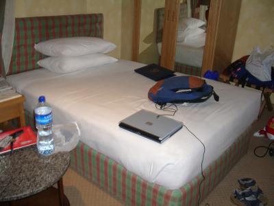 ドーハはホテル代が高いの何の!インド人の経営するホテルに泊まりましたがこの程度で約9000円。安い部屋がなく、やむなくこの部屋に宿泊しましたが、これでエグゼクティブクラスなのです。ドバイなら同額でもっといい場所あるのに・・・。後で請求書を見ると税金のようなものが17%もかけられていました・・。