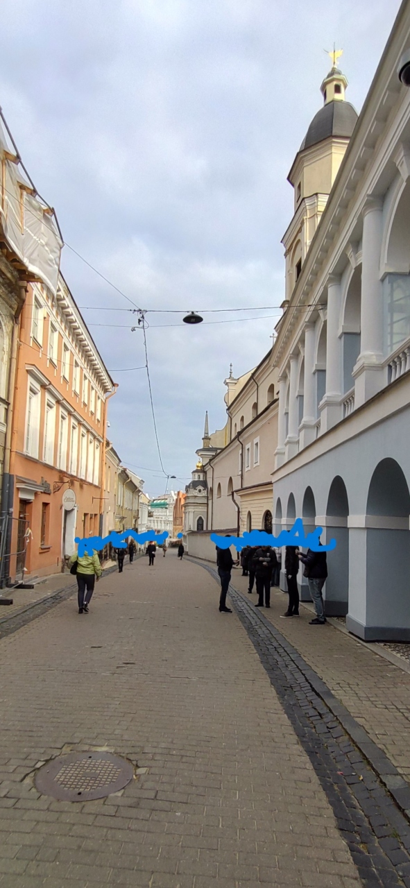 ヴィリニュスの旧市街の入り口である「夜明けの門」から「旧市庁舎」まで続く通りです。「聖テレサ教会」や「聖三位一体教会」などの教会がありました。石畳でそれほど広くはない通りですが、かなりの人が往来していました。
