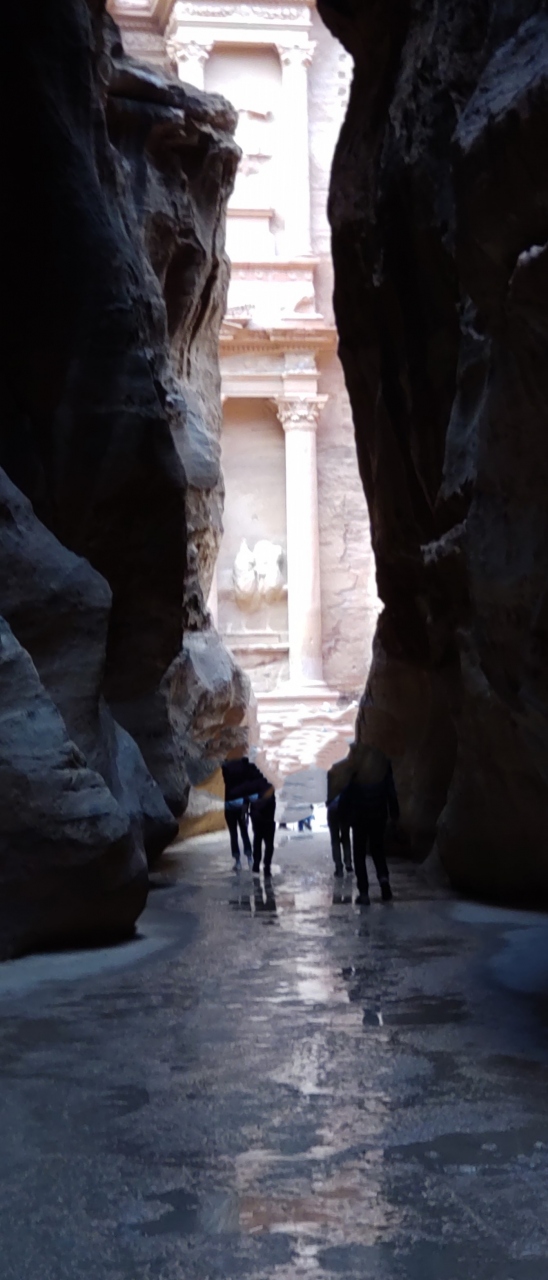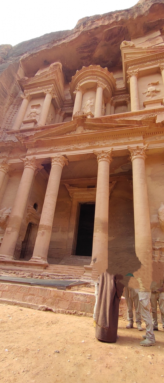 1.2kmあると言う「シーク」をひたすら歩いていると、ある瞬間、その割れ目に「エルハズネ」が現れます。「ついに来た!」という感動でいっぱいになりました。高さ45m、幅30mのファザードの彫刻も見ごたえがありました。