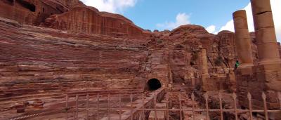 ペトラ遺跡の「エルハズネ」から少し歩いたところにあります。紀元前1世紀頃の、ナバタイ王アレクス4世により建設されたそうです。その後のローマ支配下で客席が8500人収容までに拡張されたそうです。岩を削ってつくられているところが特徴的です。