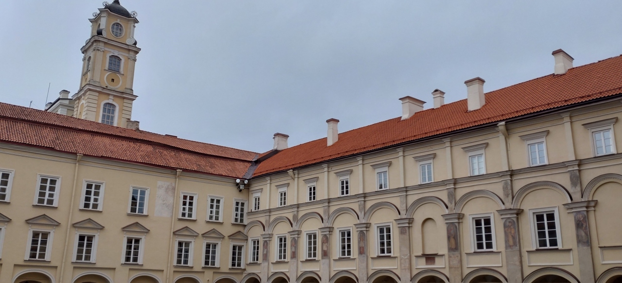 ビリニュス旧市街の中心あたりにあります。入場料が必要と聞いていましたが、観光客らしき人はおらず、どこから入場したらいいのかわからず、学生らしき人に案内されて図書室を見ることができました。受付で お金は要らないと言われました。フレスコ画は修復中で見れないとのことです。後から考えると、別の立派な図書室があったようです。見学をやっていなかったようです。