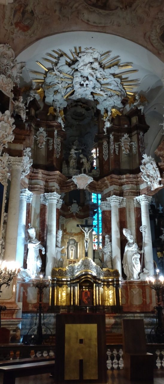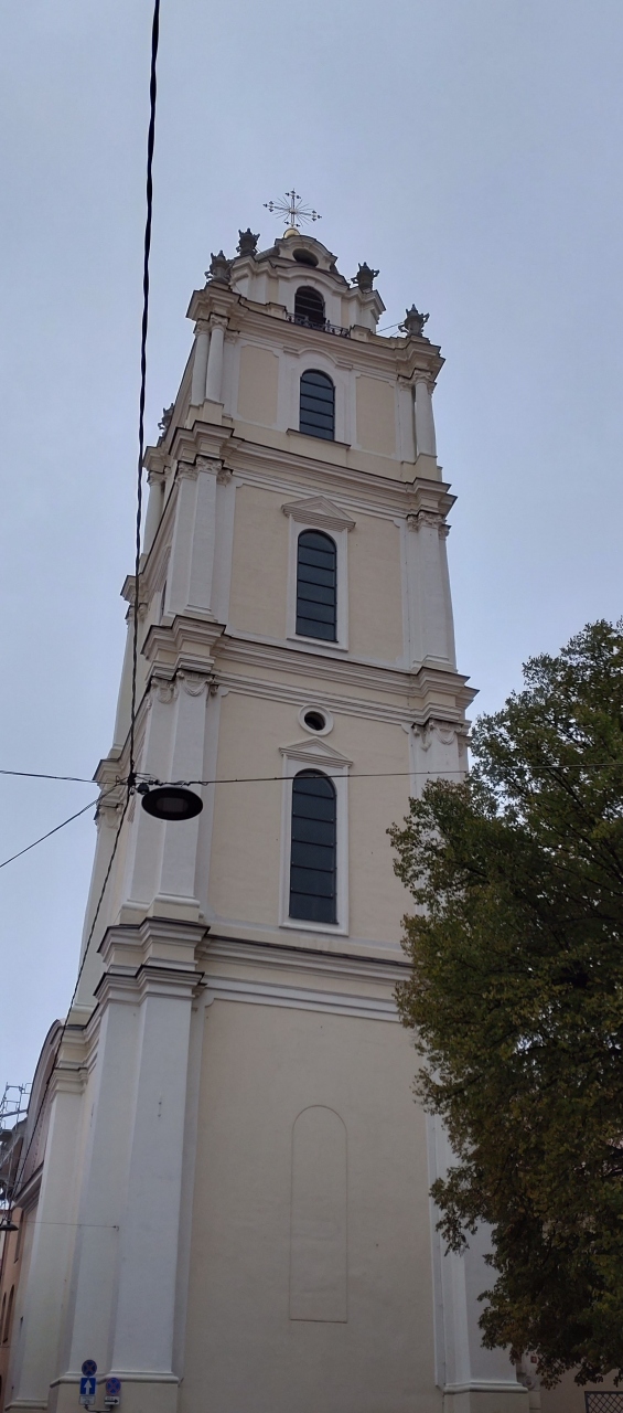 「ヴィリニュス大学」の敷地の中にあります。近くに入場料を払う場所があると思っていたのに、そのようなものは見当たりませんでした。多分、大学内のフレスコ画が修復中で、見学者の受け入れをしていなかったのだと思います。教会は、遠方からの訪問客を中へ受け入れてくださいました。特に感じたのは、リトアニアの人々は、日本人に興味と優しさを示してくださるようでした。素晴らしい教会でした。