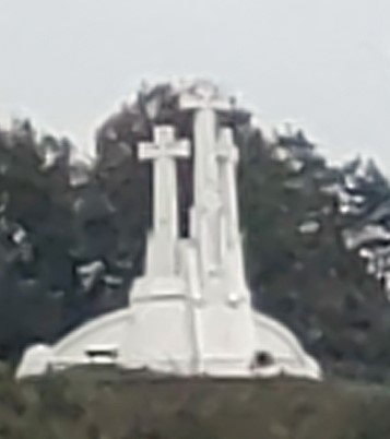ヴィリニウス市街の東の丘に建っています。三本の十字架は、14世紀、布教の折に虐殺された修道士を追悼するために、17世紀に建てられたそうです。旧ソ連時代の破壊の後、1989年に現在のモニュメントができたとのことです。「聖アンナ教会」から20分ほどかかりました。