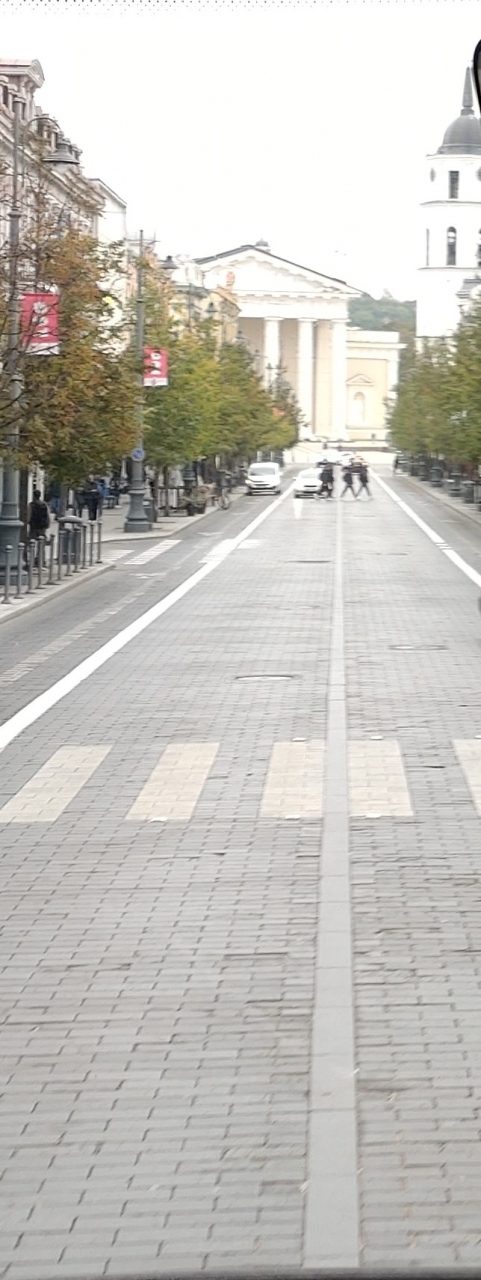 「ビリニュスの大聖堂」の正面入り口から、真っすぐ西へのび、国会議事堂までを貫く大きな通りです。この通り沿いには、政府機関や劇場や銀行・ホテル・カフェ・ショップと賑わっています。普通に車が通行していました。