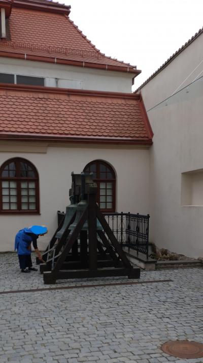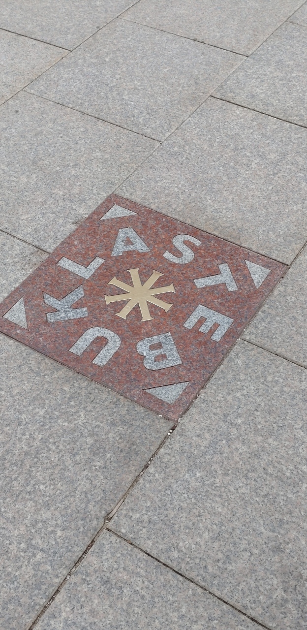 ヴィリニュスの「大聖堂」と「鐘楼」の間、鐘楼の登り口の近くにあります。「奇蹟のタイル」です。この上で3周回ると願いが叶うそうで、「信じる者は・・・」ということで、しっかり回ってきました。ガイドさんの話をきいて、ツアー参加者は回っていましたが、ほかの観光客は気に留めていないようでした。
