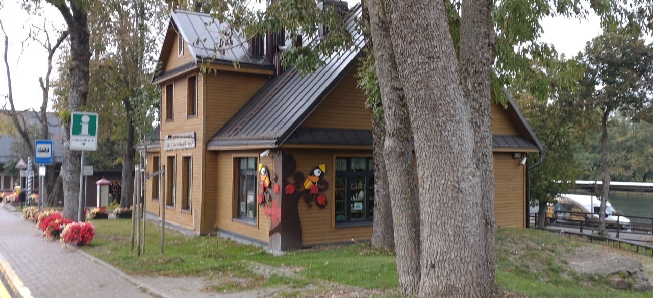 「トラカイ城」観光にて、橋を渡る手前にありました。ログハウスのかわいい建物です。トラカイの観光地図をいただきました。大きくわかりやすく、インフォメーションのマークが掲示されていました。混みあった場所でもなく、わかりやすく ツアーの集合場所にピッタリのところでした。