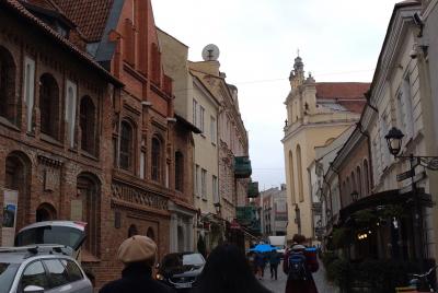 「旧市庁舎」のある「ディジョイ通り」から北方向にのびる通りで、「ヴィリニュス大学」の横を通っています。さほど広くはありませんが、レストランやカフェ、お土産屋さんが軒を連ね、華やかで賑わいのある、そして趣のある通りです。