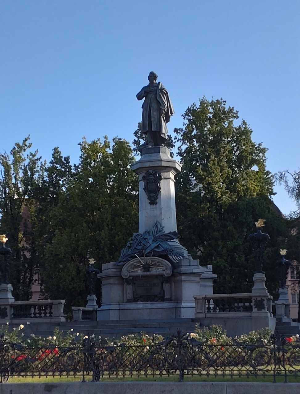 「クラクフ郊外通り」沿いにありました。周りに花が咲いていて、小さな公園のようなところに、立派な台座があり、そこに像がありました。台座には、素晴らしい装飾がなされていて、立派な方の像だと感じました。ガイドさんによると、ポーランドの有名な詩人とのことで、ショパン同様、芸術を愛する国民性が現れているそうです。