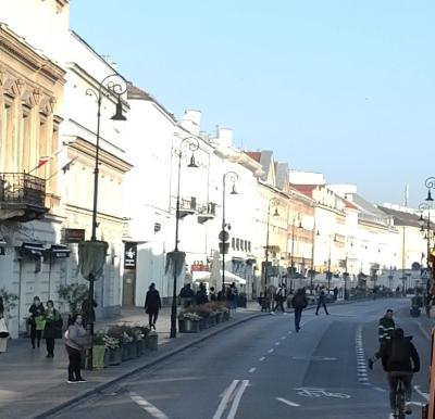 「王宮前広場」から「クラクフ郊外通り」の南方向、「聖十字架教会」「コペルニクス像」を過ぎると「新世界通り」になります。「クラクフ郊外通り」の教会等の観光と一変、レストランやショップが並ぶお洒落な通りです。