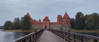 「ガルヴエ湖」に浮かぶ小さな島の上に建っています。「トラカイ」は、その昔リトアニア大公国の中心的な場所で、城は戦略的にとても重要だったそうです。「トラカイ城」のある島へは、街の方から 木製の橋を渡って行きました。建物の内部は、歴史博物館になっていて、たくさんの展示物がありました。