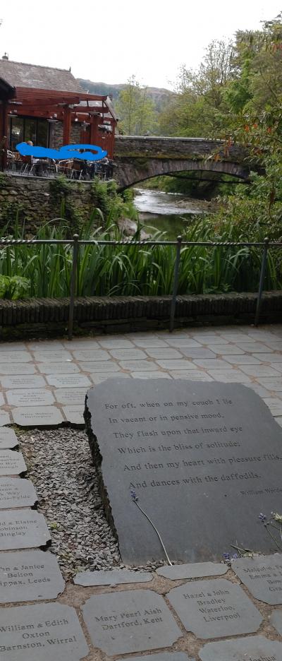 「セント オズワルド教会」の横に広がる素敵なお庭です。広くて、のどかで、美しく、散歩が楽しくなります。 庭園の奥に、水仙を愛した「ワーズワース」の詩の一節が刻まれた石碑があり、「ロゼイ川」の景色とあいまって、素晴らしい光景が広がっていました。訪問時は水仙は咲いていなく、ちょっと残念でした。