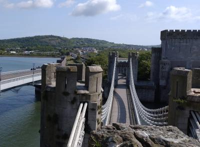 「コンウィ吊り橋」は、1822年から1826年に建設されました。長さは 99.5メートルあるそうです。世界遺産のコンウィ城付近にあります。吊橋に並行して、新しい道路橋と、鉄道橋があり3つの橋が並ぶ様子は見ものです。