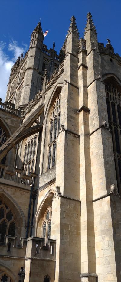 バースの街中にあり、観光の中心的存在です。「ローマン・バース博物館」がすぐ隣にあります。教会は「バースストーン」が使われていて重厚ながらも温かみを感じました。中に入るのに5ポンドの寄付が必要とのことです。時間の関係か、中の人に「クローズ」と言われました。西側のファサードの「はしごを上り下りする天使たち」の彫刻は珍しく、必見です。