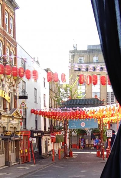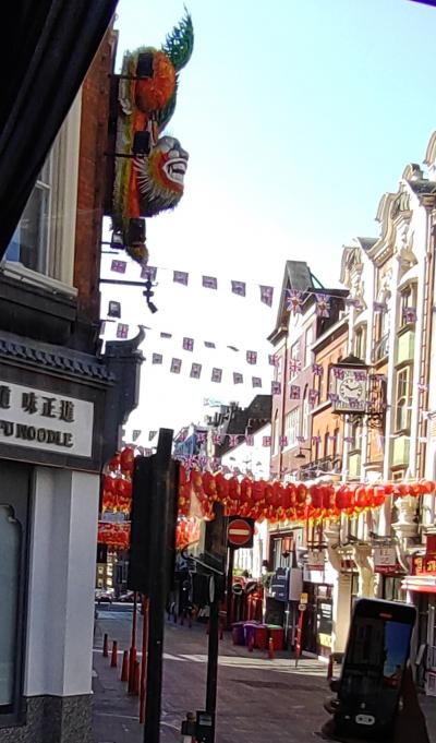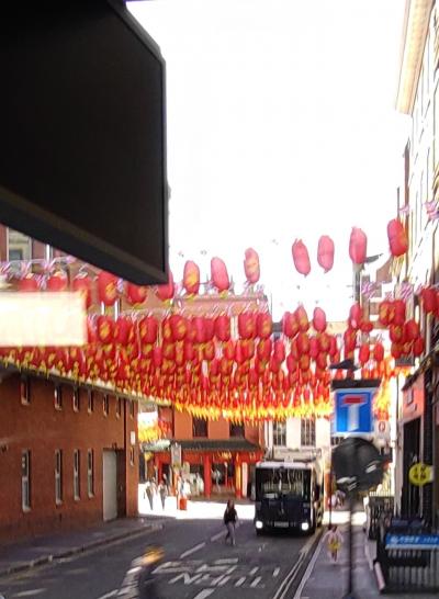「ピカデリーサーカス」にほど近いところにありました。赤い提灯がたくさんつるされているのでよくわかります。今回は車窓からの見学でしたが、提灯を飾られた通りをいくつか見ることができ、かなり広範囲に感じました。