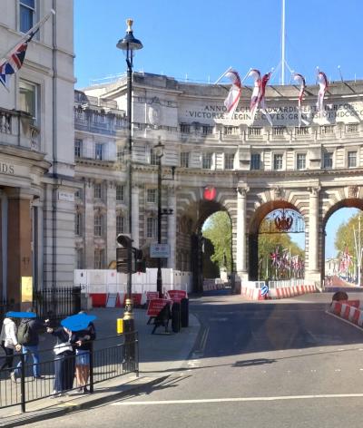 チャールズ国王の戴冠式のパレードなど、テレビ報道でよく見る象徴的なアーチです。このアーチの奥に「バッキンガム宮殿」があります。ヴィクトリア女王を記念して建造されたアーチは1912年に完成しました。かつては内閣府や社会的排除対策室がここにあったそうです。