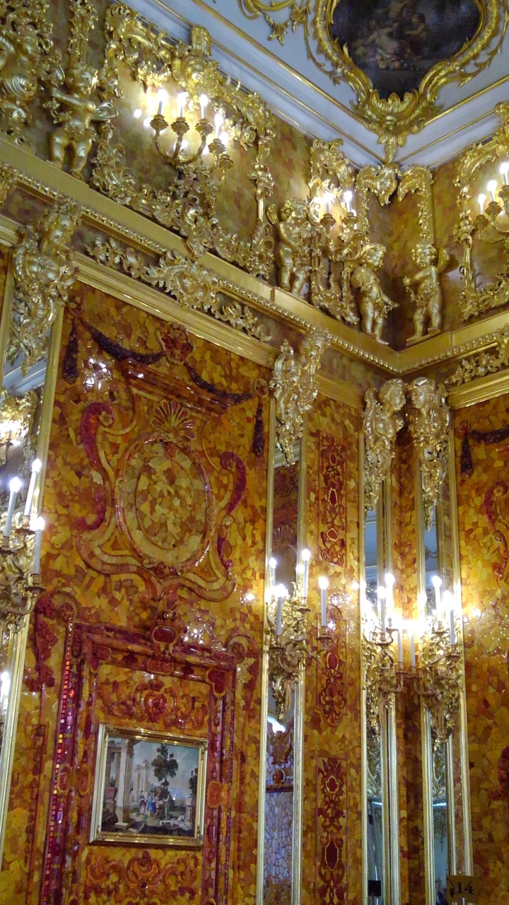 かわいいパステルブルーの建物の中は、絢爛豪華な部屋ばかりでした。特に琥珀の間に入った瞬間は溜息がでました。部屋の壁一面の琥珀の装飾は素晴らしいの一言です。これまでは撮影は禁止されていましたが、撮影ができるようになりとてもラッキーでした。