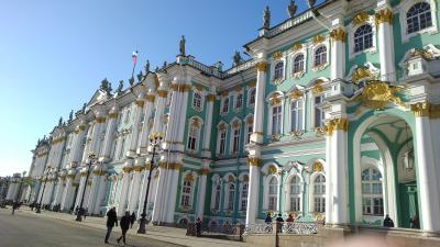 エルミタージュ美術館などかわいい色合いのパステルカラーの建物がたくさんありました。サンクトペテルブルクで一日中晴れの日は年間40日程度しかなく、グレーの空とグレーの川や道路など、一年を通して周りがグレーに囲まれているため、気持ちを明るくするために建物はきれいな色にしてあるとガイドさんは言っていました。ロマノフ王朝皇帝のピョートル大帝によって作られたサンクトペテルブルクは歴史を感じるとても美しい街です。