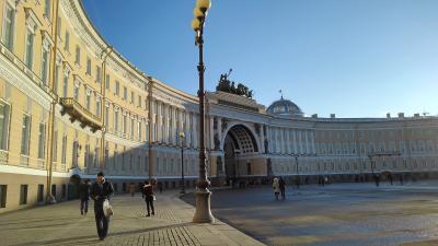 広場の中央には、ナポレオン戦争の勝利を記念して建てられたアレクサンドルの円柱が建っています。かなりの広さがあります。広すぎて、散策なんて気分にはなれませんね。眺めるだけで充分です。- 旅行時期