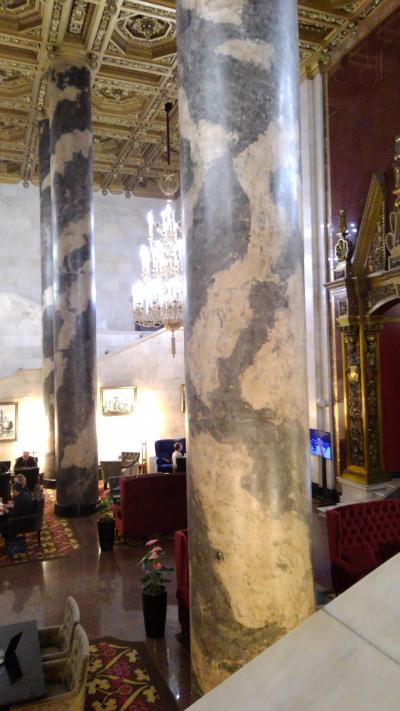 ロビーはそんなに広くはありませんが、天井は高く、雰囲気はかなり重厚です。エレベータの場所や食事場所などの配置が、普通のホテルの感覚どおりでないところが スターリン建築?! 客室の配置もわかりにくく、無駄に広いところもあったり。まごまごしてたら、スタッフの方が荷物持って客室まで親切に案内してくれました。ロシアはチップ文化がないそうだから・・・いいか~?!いろいろな点で気を使ってくれることがあり、感じはよかったです。レニングラード駅などに近いので何かと便利でした。朝の食事に無料のシャンパンもあります。気持ちよくサービスしてくれました。