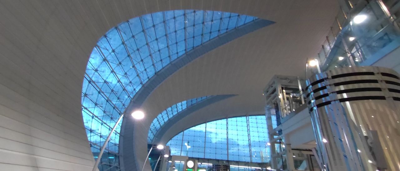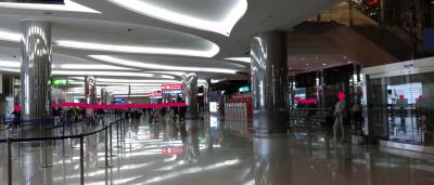 エミレーツ航空にて、成田からリスボンへ向かう時にトランジットとして利用しました。空港のX線検査では、水のペットボトルをバッグに入れておけば通り抜けられると ガイドさんは言っていました。そのとおり、何の問題もなく通過できました。120人が一斉に移動できるエレベーターは、見ものでした。